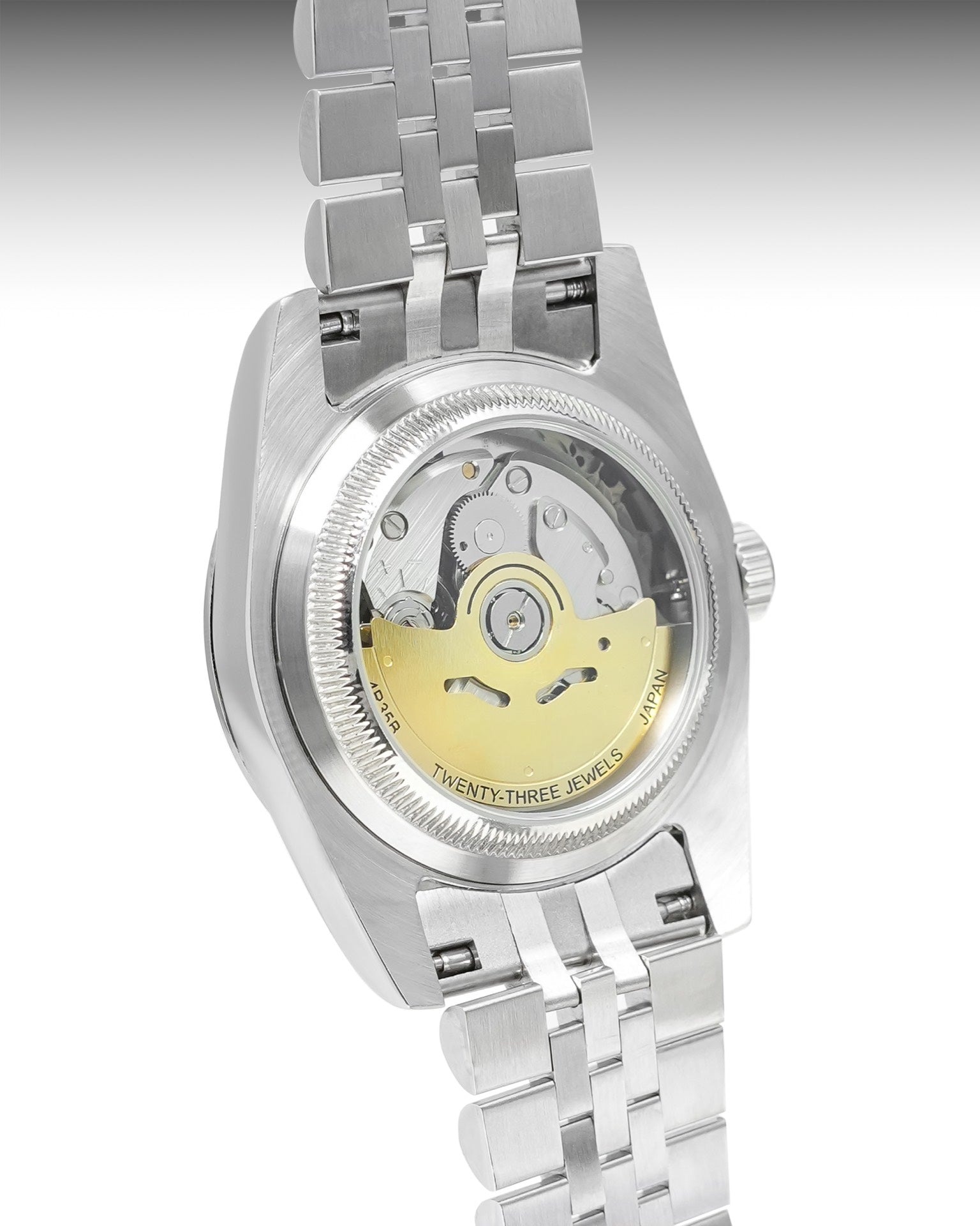 Movement NH36 Japan 24 Jewels, 21,600 bph, 41 hours of power reserve, bi-directional rotor