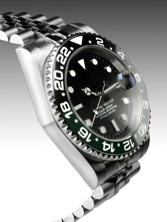 Sub Sprite | Custom Mod with Black Dial and Jubilee Bracelet | Black and Green Ceramic Bezel