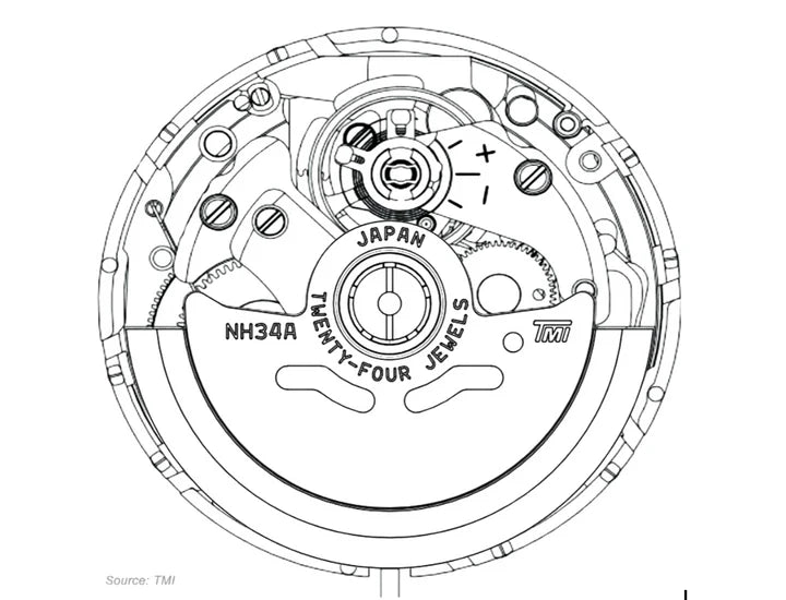 The NH34A movement, manufactured by Seiko Instruments (SII) and Time Module (TMI), is an automatic movement with specific attributes and functionalities.