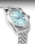 Crafted for the modern collector, the Datejust Tiffany Wimbledon showcases sky blue roman styling and an exquisite jubilee bracelet. Beneath its refined exterior lies a reliable NH35 Japan 24 Jewels, making it as dependable as it is distinctive.
