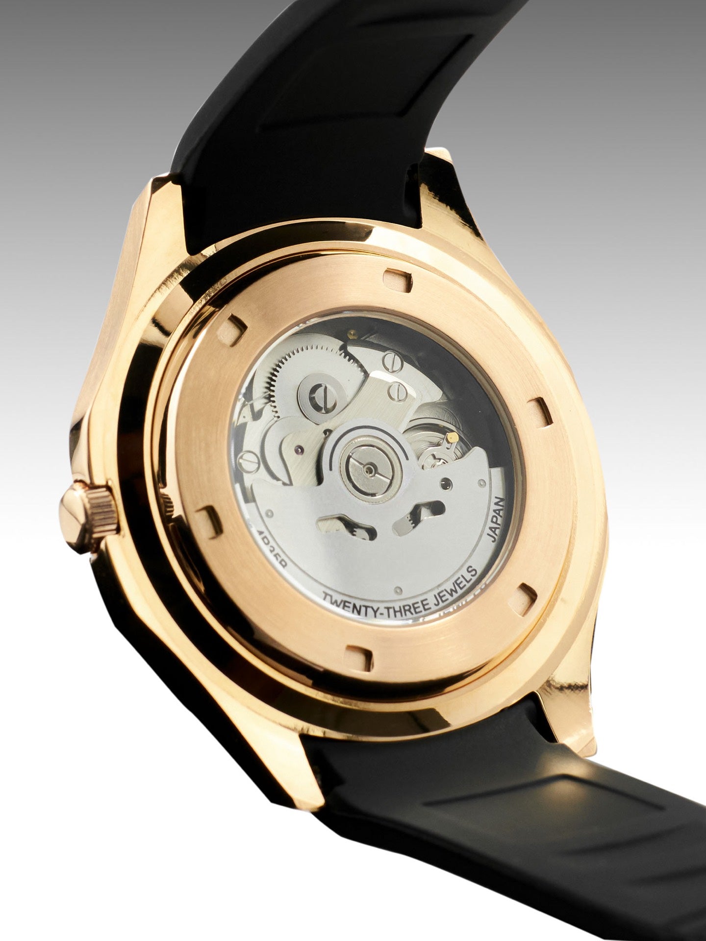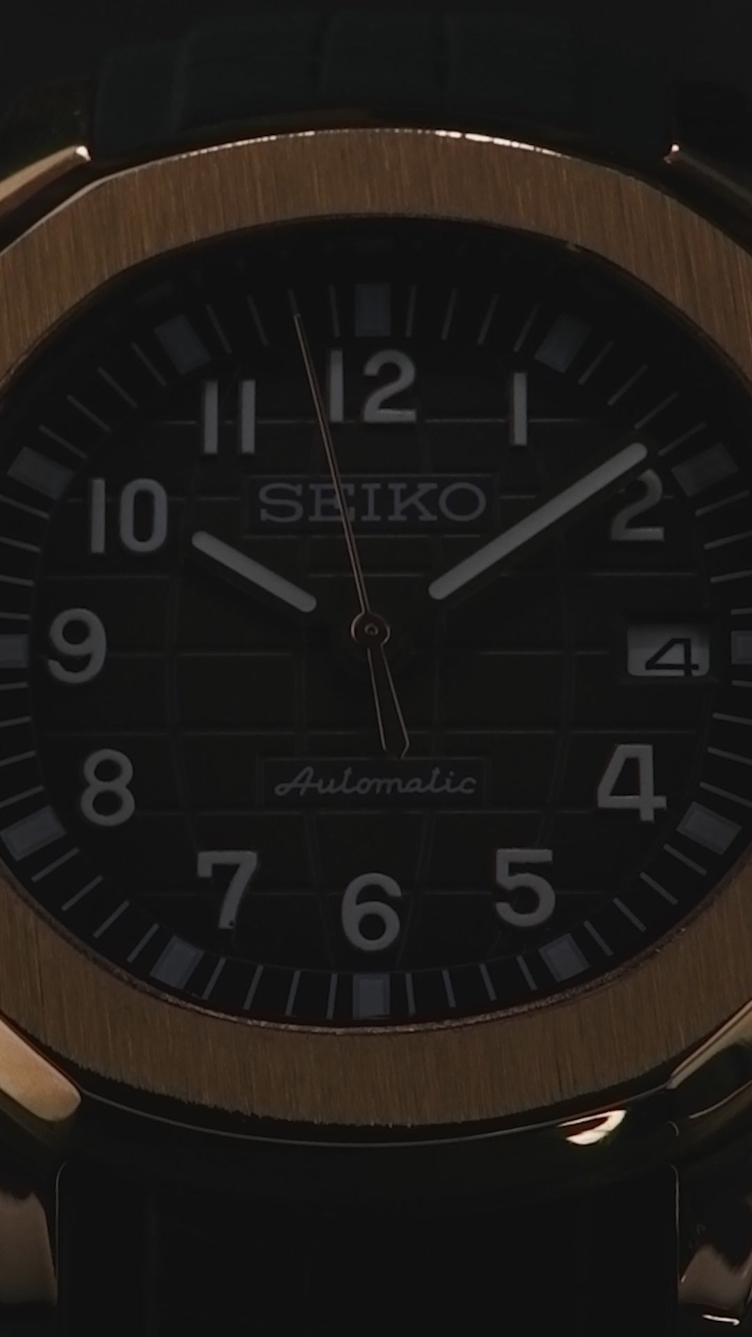 The Aquanaut Gold Black is a tribute to timeless style. A sleek brown with c3 lume dial sits inside a 41 mm excluding crown stainless steel shell, and its black silicon adds to its refined feel. Every detail speaks to those who appreciate mechanical mastery, powered by the trusted NH35 Japan 24 Jewels.
