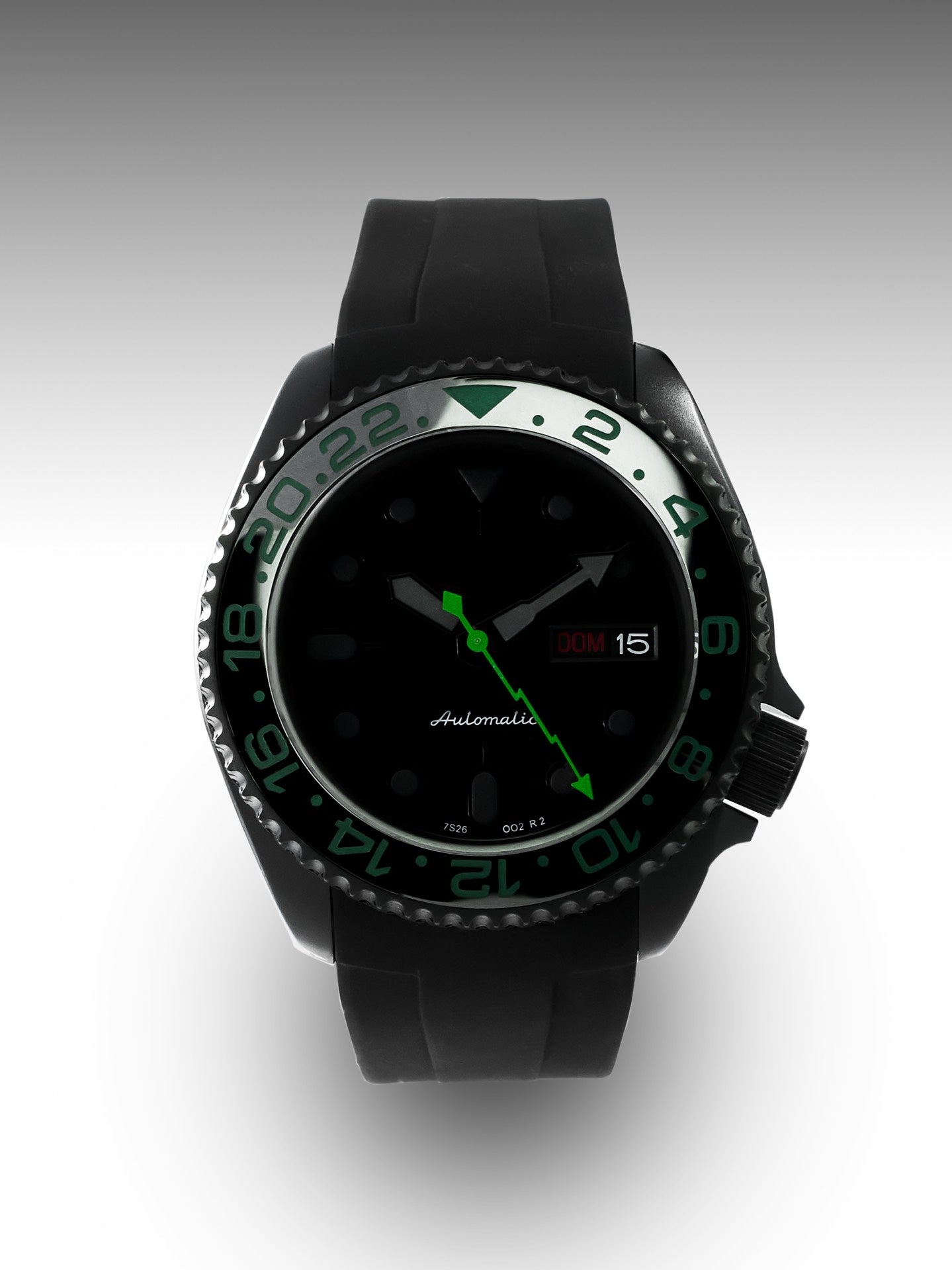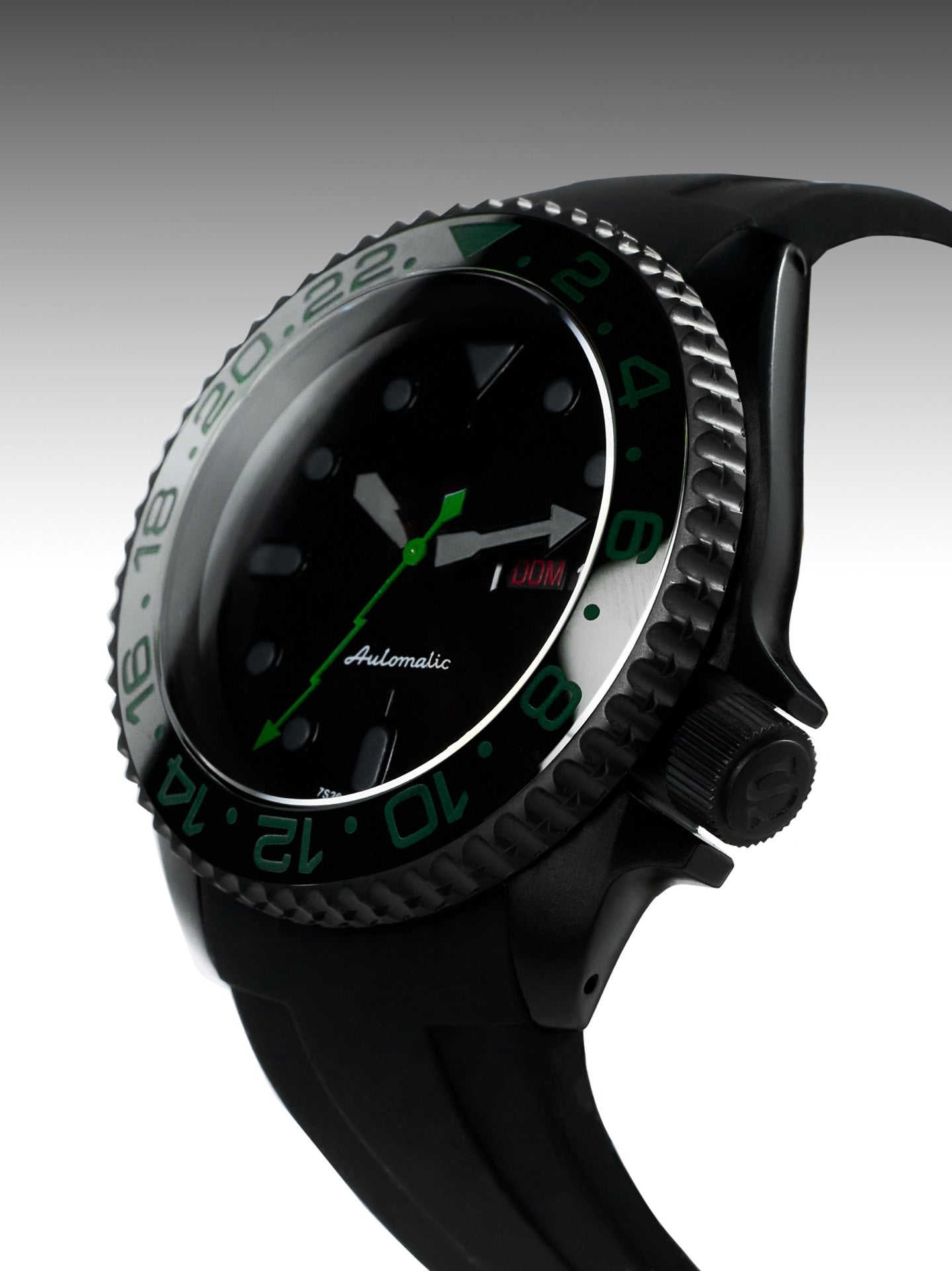 Crafted for the modern collector, the Skxx Stealth Green showcases black styling and an exquisite black fkm rubber. Beneath its refined exterior lies a reliable NH36 Japan 24 Jewels, making it as dependable as it is distinctive.