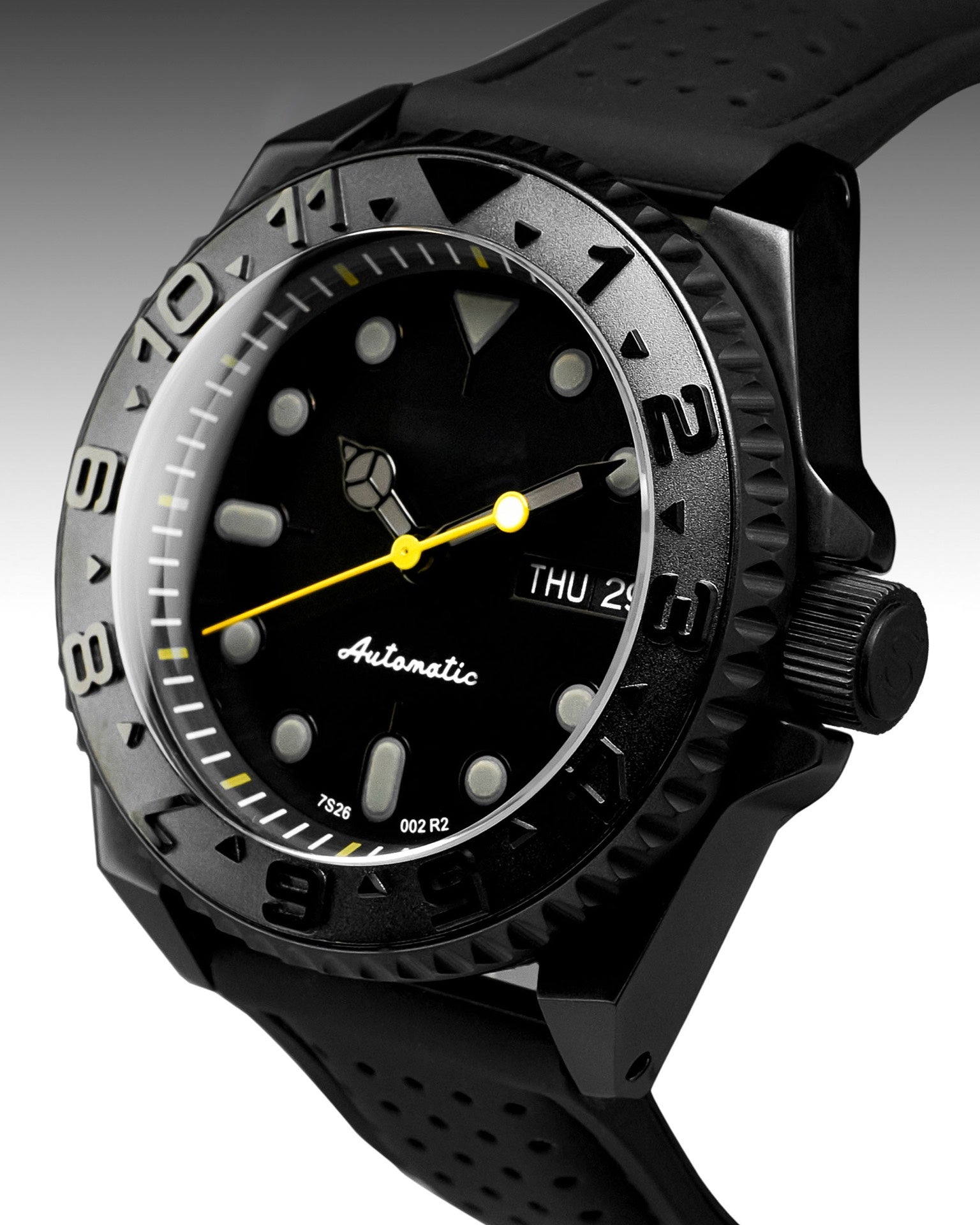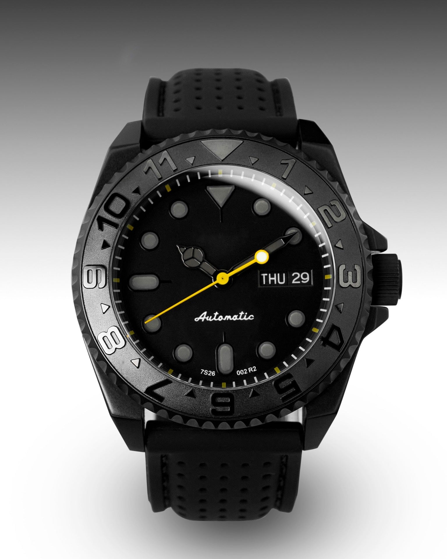 Crafted for the modern collector, the Sub Stealth 2 showcases black styling and an exquisite black fkm rubber. Beneath its refined exterior lies a reliable NH36 Japan 24 Jewels, making it as dependable as it is distinctive.
